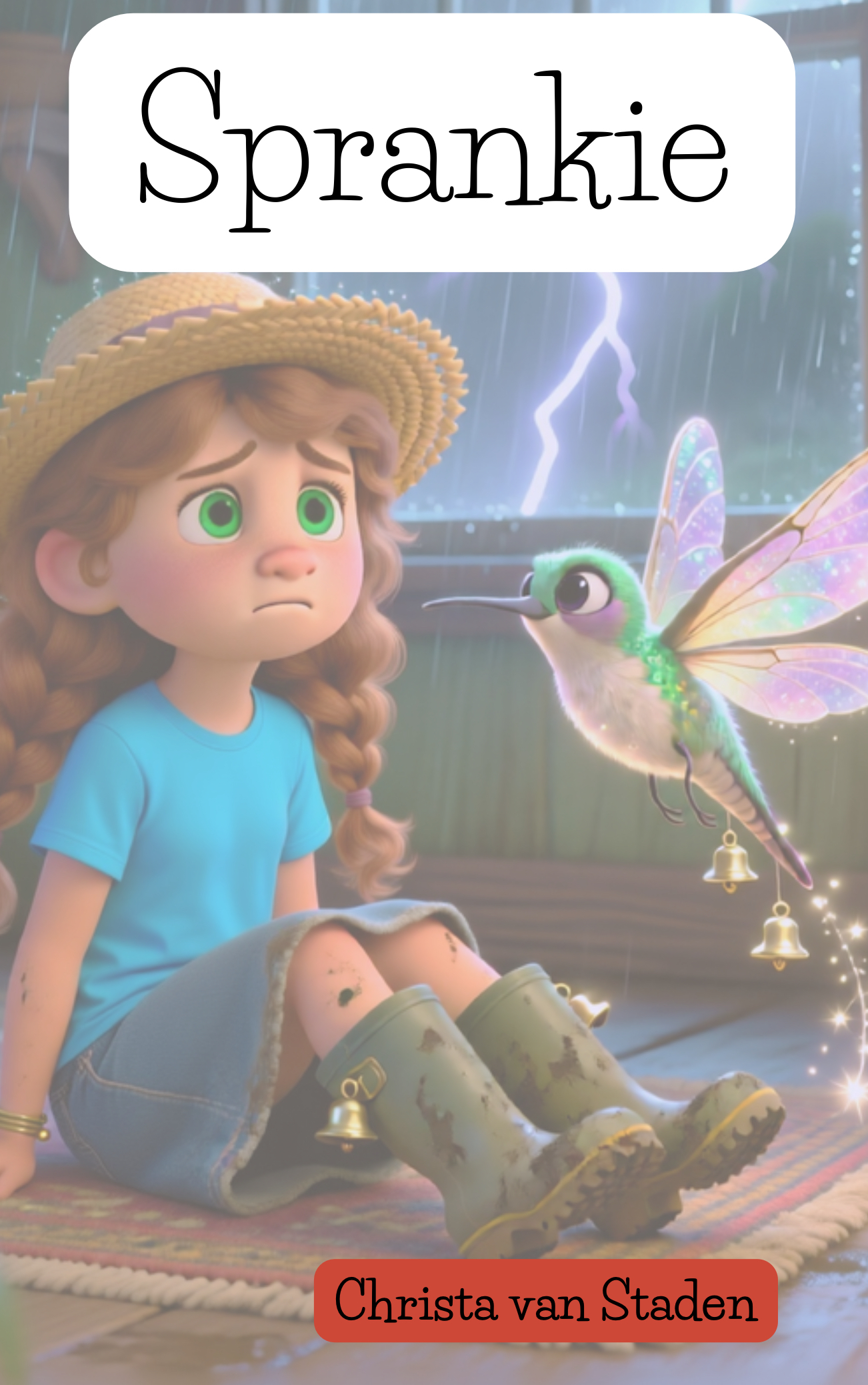 Sprankie is die storie van ‘n eensame plaasdogtertjie wat ‘n denkbeeldige maat (Sprankie) geskep het om haar eensaamheid te verdryf. Saam het hulle baie avonture op die plaas, maar sy maak ook later maats met Klara, ‘n alleenkind wat op die buurplaas ingetrek het. Die boek het 72 bladsye, waarvan elke tweede bladsy geïllustreer is. Die boek word afgesluit met ‘n lys nuwe woorde en vrae om leesbegrip te toets. Die antwoorde vir die vrae is gratis op my blog beskikbaar.